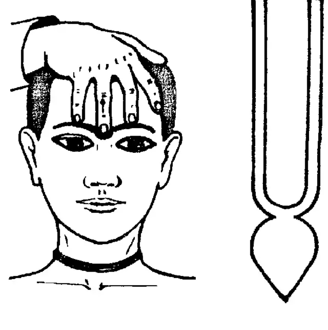 на лоб. Для того чтобы получились две вертикальные линии, достаточно сильно прижимайте палец ко лбу. Движение должно быть направлено вверх (а не вниз), его можно повторить несколько раз, чтобы тилака получилась правильной формы, представляющая собой две прямые тонкие параллельные линии. Затем нанесите пасту гопичандана на нос движением сверху вниз. Длина этой отметки должна быть равной трем четвертям длины носа (отметка не должна быть короткой, но и проводить ее до самого кончика носа также не следует). Отметка на носу должна соединяться в переносице с линиями на лбу, не нужно оставлять между ними пространство.